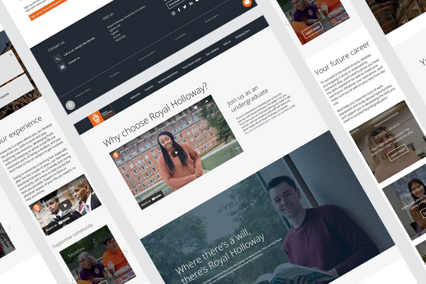 Utilising Adobe XD wireframes and hi-fi, in-browser prototypes to design and develop Royal Holloway’s first Online Prospectus. Leading regular, collaborative meetings and briefing Developers on design specifications.